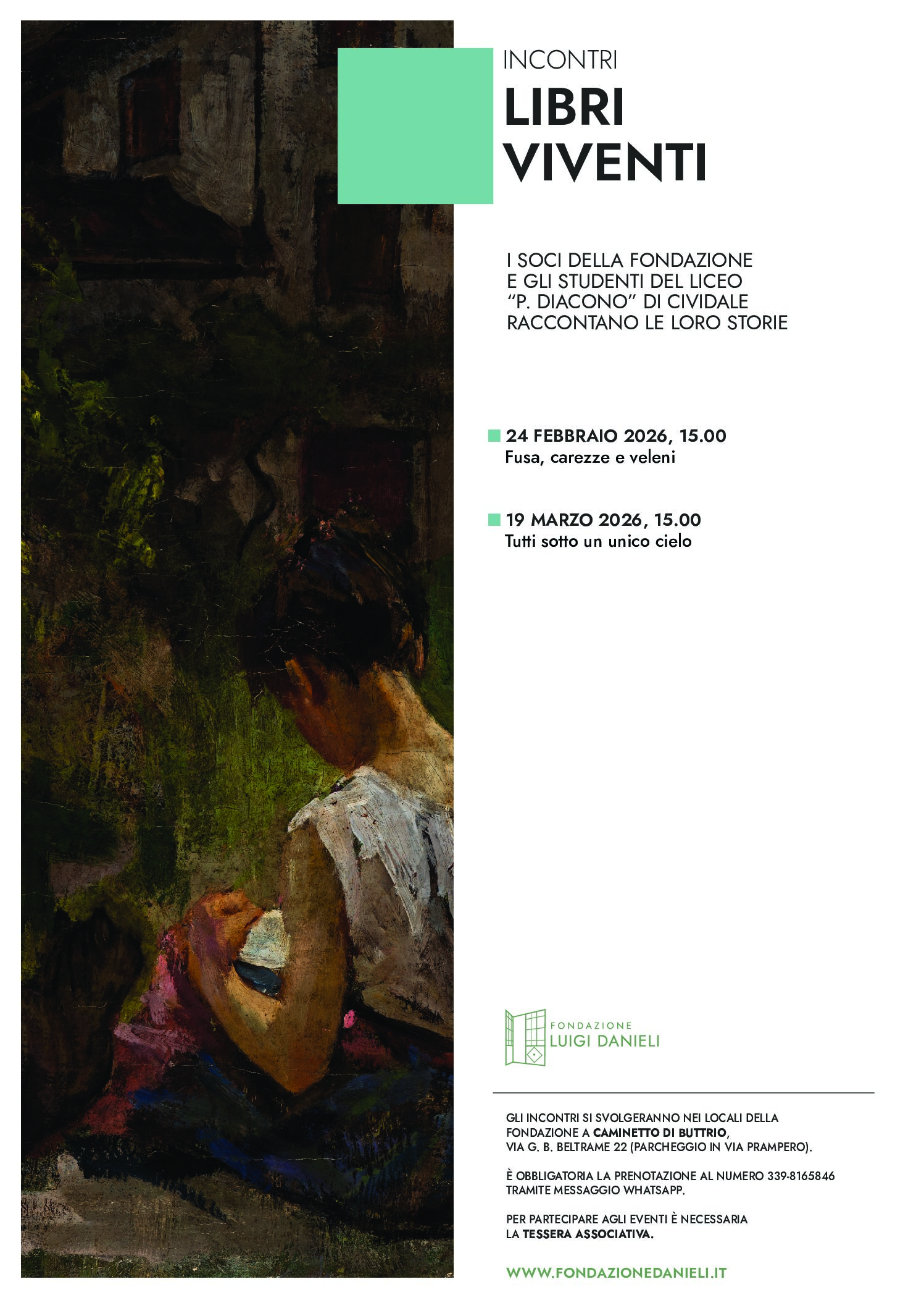 La lettura può essere una pratica di partecipazione, capace di trasformarci e di creare una comunità in dialogo. Con questo spirito nella Fondazione Danieli i libri prenderanno vita, cioè le persone diventeranno libri da sfogliare e le loro esperienze capitoli da condividere. Un’iniziativa che unisce generazioni diverse poiché protagonisti saranno il gruppo Creativi della Fondazione (coordinato da Donatella Basso) e gli studenti del Liceo “P. Diacono” di Cividale, chiamati a raccontare episodi significativi della propria vita e storie di animali.